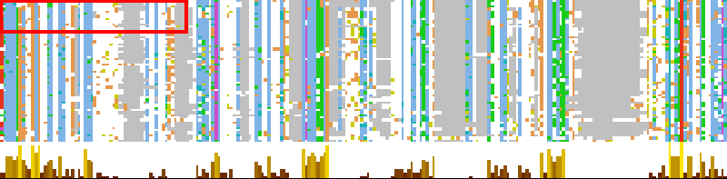 The red box indicates the currently viewed region of the alignment, this may be moved by clicking and dragging with the mouse.
